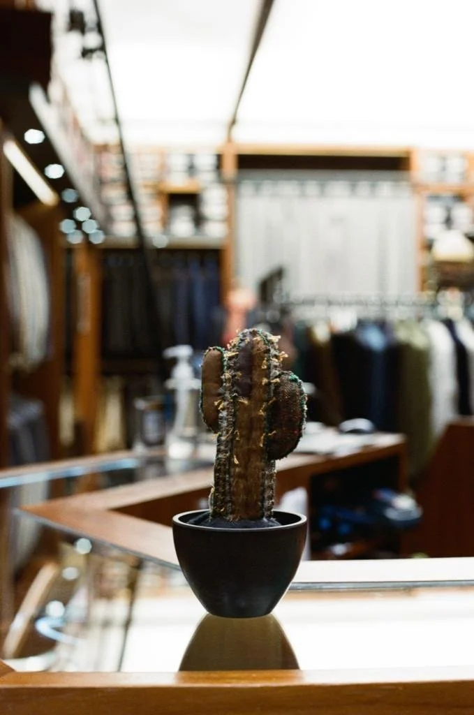 Cerruti partnered with 222 the Backyard to use these out-of-season fabric to create Boro Bonsai, providing tailor shops with a unique, alternative way to showcase Cerruti's fabrics.