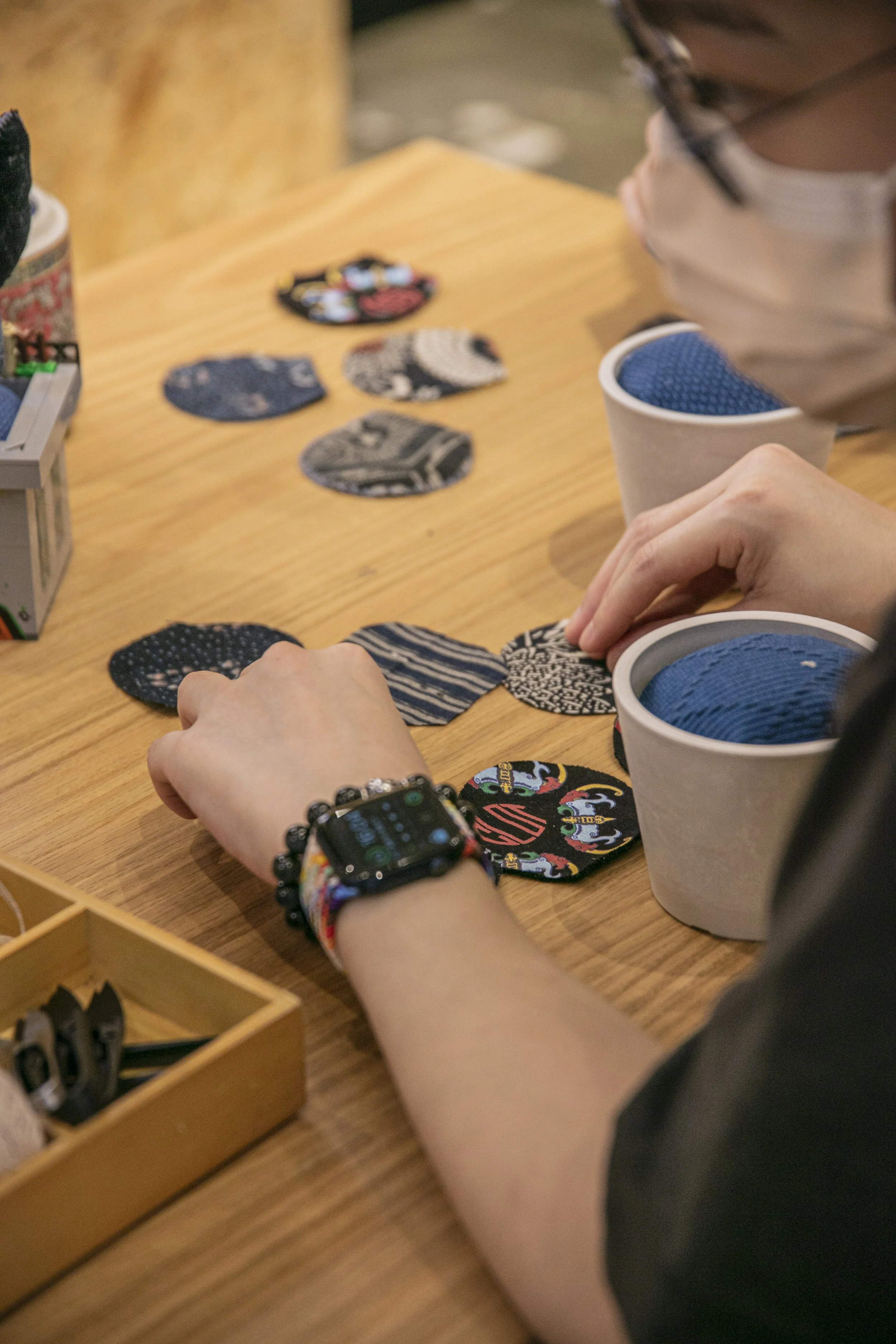 In the CLOTsacai the home collaboration, 222 the Backyard was invited to use leftover fabric scraps from CLOT's signature silk products to conduct up-cycling workshops, creating home decor items.